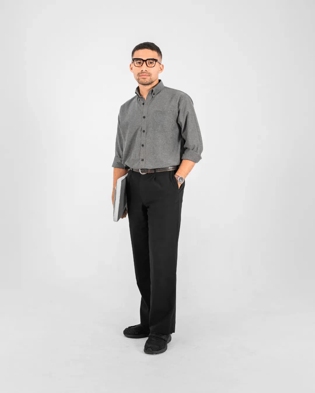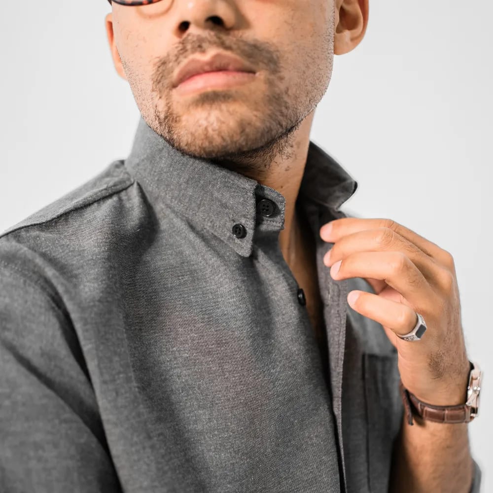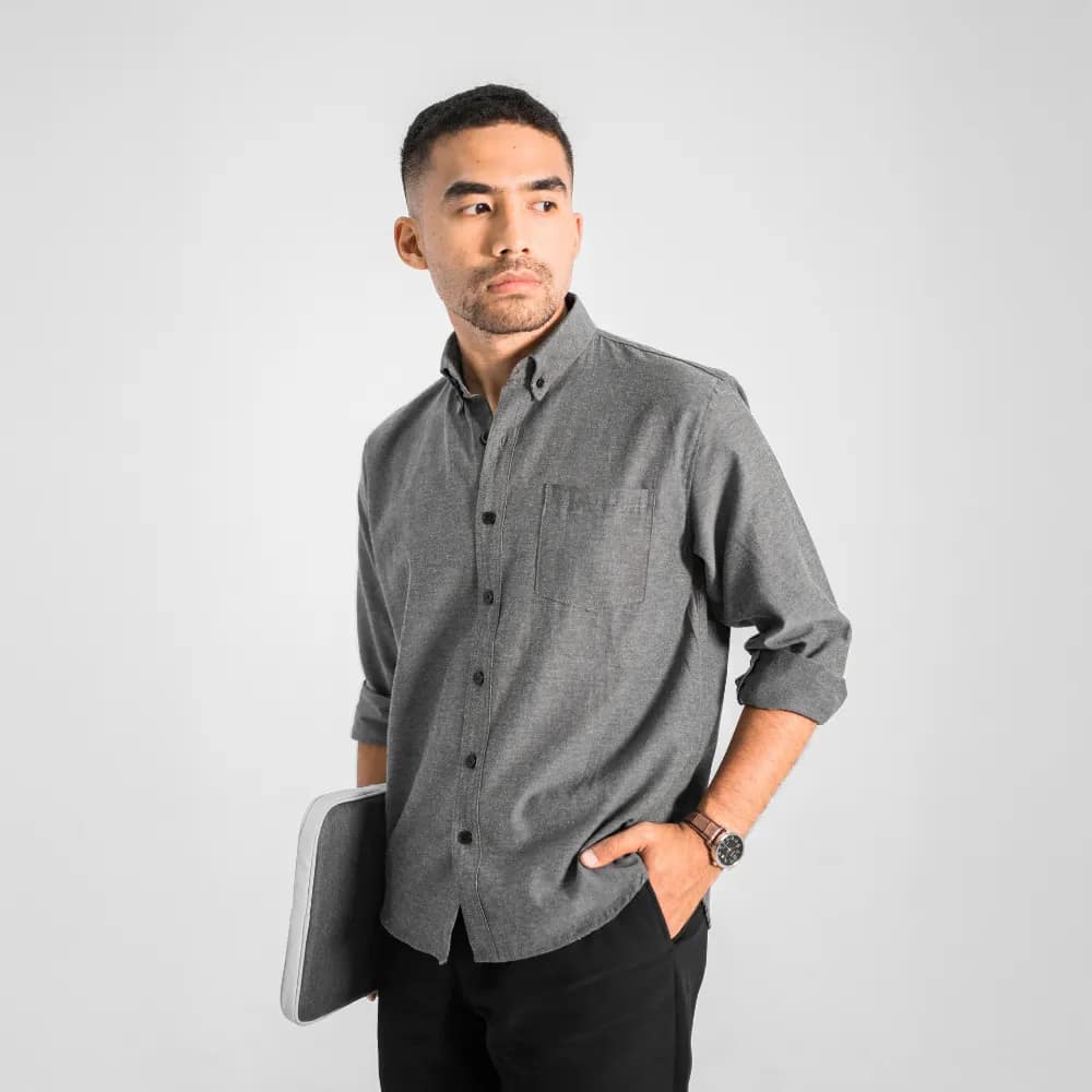 Will – Kemeja Lengan Panjang Oxford Dark Grey dirancang untuk menghadirkan kesan tenang, bersih, dan halus dalam satu siluet yang seimbang. Menggunakan material Oxford premium dengan tekstur halus yang terasa kokoh namun tetap nyaman di kulit, kemeja ini cocok untuk penggunaan harian maupun momen pribadi.